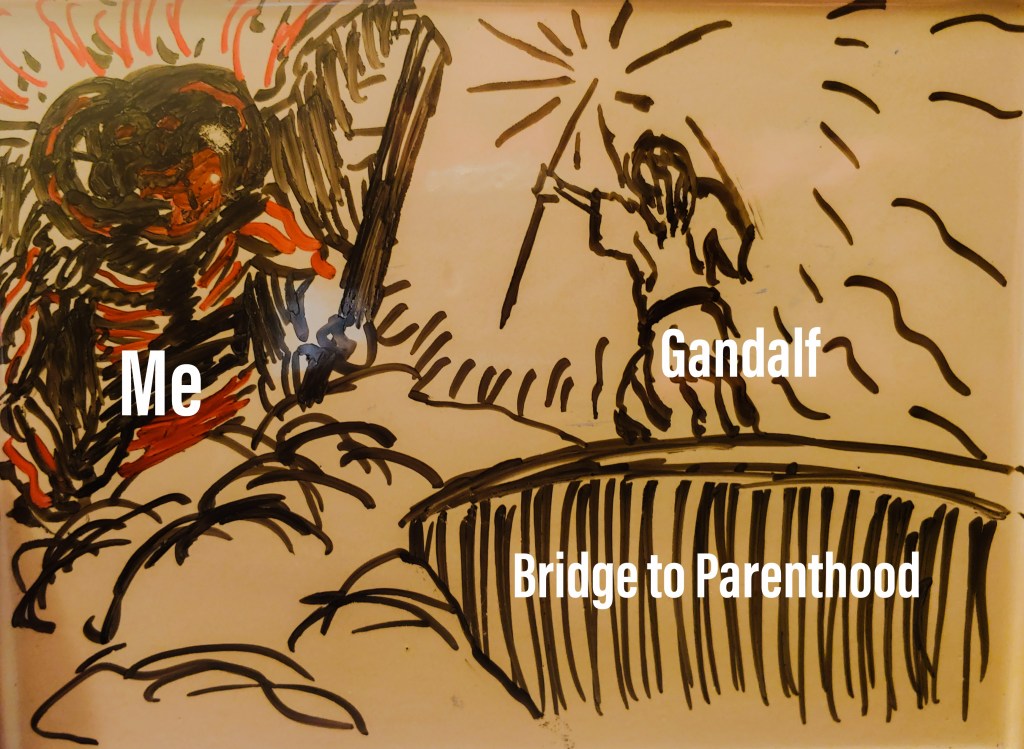 I cash out my retirement account and we embark on the obstacle course which is IVF. Now that we are on this course we have three chances to conceive and if we are not successful then Gandalf drops down onto the bridge to parenthood and yells, “You shall not pass.”